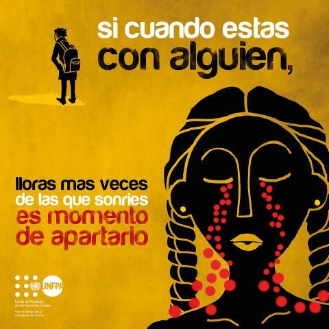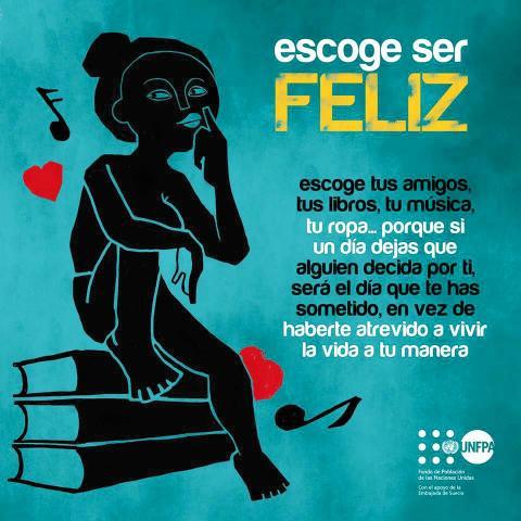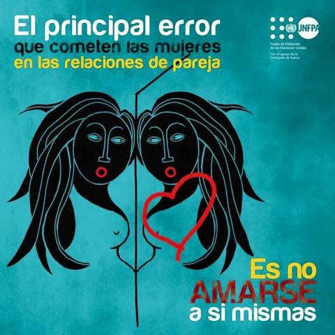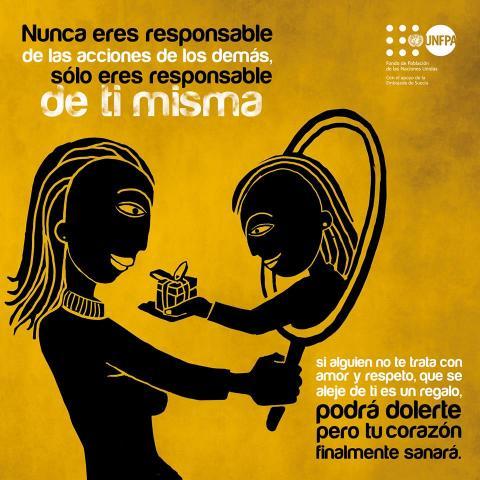El Fondo de Población de Naciones Unidas (UNFPA), agencia del Sistema de Naciones Unidas que trabaja por los derechos de adolescentes y jóvenes en Bolivia, promueve una campaña de prevención de noviazgos violentos en los colegios y en Facebook a través de la utilización de afiches artísticos que animan a las adolescentes y jóvenes a fortalecer su autoestima como condición imprescindible para evitar círculos de violencia con sus parejas.