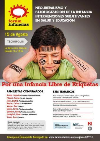Jornada: neoliberalismo y patologización de la infancia. Intervenciones subjetivantes en salud y educación 15 de agosto de 2015 . CABA . Argentina