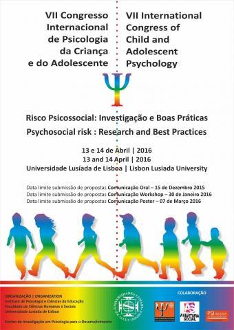 O VII Congresso Internacional de Psicologia da Criança e do Adolescente/ VII International Congress of Child and Adolescent Psychology, com o tema Risco Psicossocial: Investigação e Boas Práticas (Psychosocial risk: Research and Best Practices) vai ter lugar nos dias 13 e 14 de Abril de 2016 na Universidade Lusíada de Lisboa.