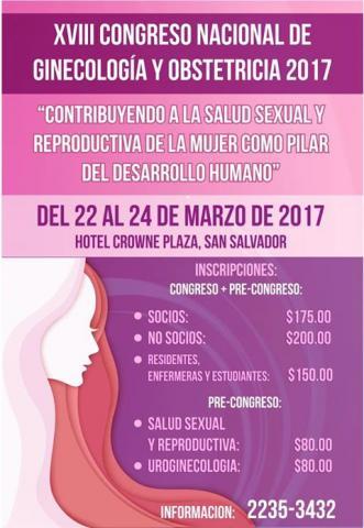 Ponencias XVIII Congreso Nacional de Ginecología y Obstetricia ASOGOES “Contribuyendo a la Salud Sexual y Reproductiva de la Mujer como Pilar del Desarrollo Humano”, 22 al 24 de marzo del 2017, Hotel Crowne Plaza, San Salvador.