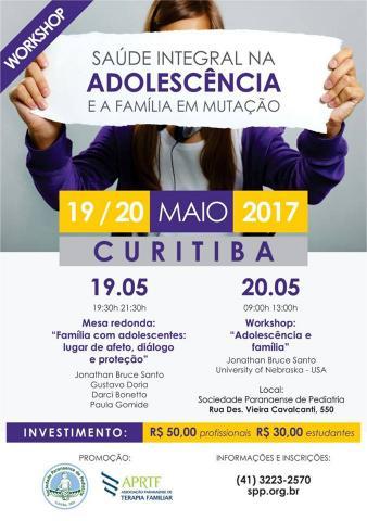 Workshop – Saúde integral na adolescência e a família em mutaçãob19 e 20 de maio Sociedade Paranaense de Pediatria SPP – Rua Desembargador Vieira Cavalcanti, 550 Curitiba PR.