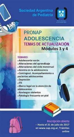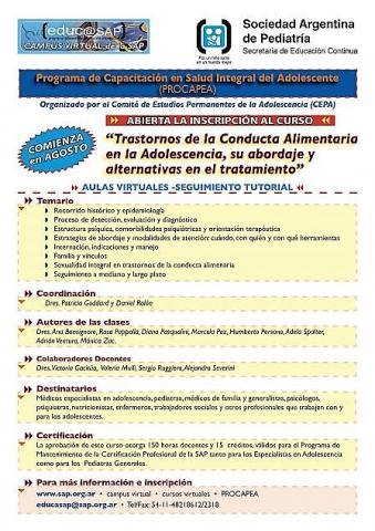 Sociedad Argentina de Pediatría .Inscripción Programa de actualización con modalidad de Educación a Distancia PRONAP Adolescencia . ProCaPeA. Programa de Capacitación Permanente en Adolescencia.Trastornos de la Conducta Alimentaria