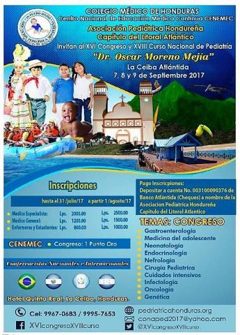 XVI Congreso y XVIII Curso Nacional de Pediatría. 7 – 9 de septiembre de 2017 Hotel Quinta Real, La Ceiba, Honduras