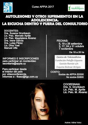 Curso Autolesiones y otros sufrimientos en la adolescencia. La escucha dentro y fuera del consultorio.Curso APPIA Inicio 5 de septiembre de 2017