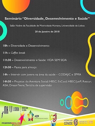 Seminario " Diversidade, Desenvolvimento e Saúde . 20 de janeiro de 2018 . Faculdade de Motricidade Humana Universidade de Lisboa