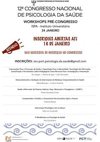 Existirão ainda workshops pré-congresso, em áreas específicas de investigação e intervenção em Psicologia da Saúde, conduzidos por especialistas no campo.