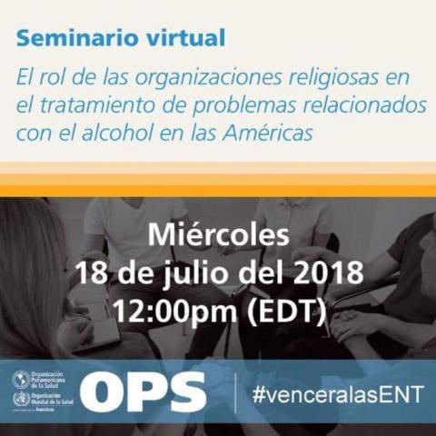 Seminario virtual: El rol de las organizaciones religiosas en el tratamiento de problemas relacionados con el alcohol en las Américas 18 de julio 2018 12pm (EDT) Actividad No arancelada