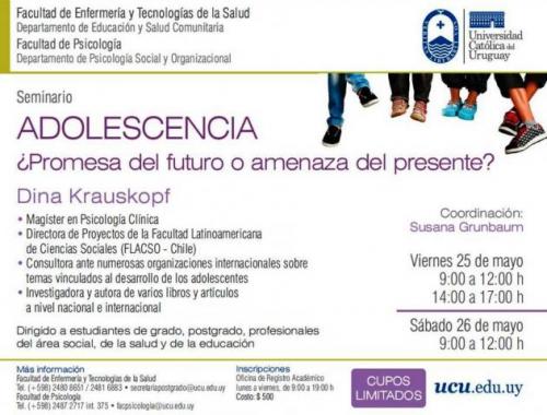 Adolescencia ¿Promesa del Futuro o Amenaza del presente? Universidad Católica de Uruguay. Facultad de Enfermería y Tecnologías de la Salud .25-26 de Mayo de 2012 . Montevideo