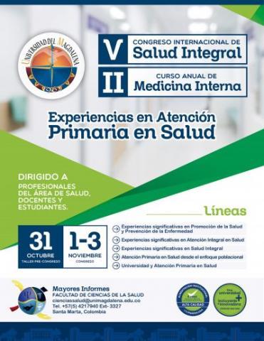 V Congreso Internacional de Salud Integral, experiencias significativas en Atención Primaria en Salud.31 de Octubre al 3 de Noviembre 2018 Universidad del Magdalena Santa Marta,Colombia