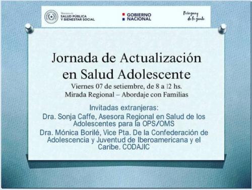 Jornada dirigida a equipos multidisciplinarios de servicios para adolescentes, equipos regionales, unidades de salud familiar y directores a nivel central.