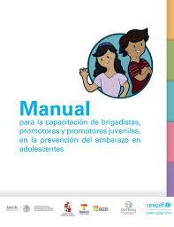 http://www.codajic.org/node/3448 Manual para la capacitación de brigadistas, promotoras y promotores juveniles, en la prevención del embarazo en adolescentes.Autores Centro Nacional de Equidad de Género y Salud Reproductiva .Secretaría Ejecutiva del Sistema Nacional de Protección Integral de Niñas, Niños y Adolescentes UNICEF México
