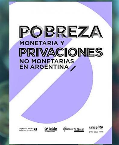http://www.codajic.org/node/3474 Pobreza monetaria y privaciones no monetarias en Argentina UNICEF Diciembre 2018 Autores : Jorge Paz, Luis Beccaria, Diego Born, Alberto Minujin, Sebastián Waisgrais y Ana Laura Fernández. El informe presenta estimaciones sobre la pobreza monetaria y privaciones no monetarias para niñas, niños y adolescentes y para la población general, usando la última información oficial disponible correspondiente al primer semestre del año 2018, de la Encuesta Permanente de Hogares (EPH) del Instituto Nacional de Estadística y Censos (INDEC).Es una contribución de UNICEF, junto a investigadores del IELDE, la UNGS y Equidad para la Infancia. Se propone una metodología para captar las manifestaciones de la pobreza desde diferentes aristas (monetaria, privaciones no mometarias y método integrado), entendiendo que la pobreza es más que la escasez de ingresos. Presenta un análisis actualizado de la magnitud y progresión del fenómeno, y ofrece un perfil de la población general en situación de pobreza, con foco en las niñas, niños y adolescentes del país. Documento: