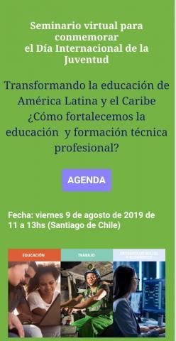 Seminario virtual gratuito para conmemorar el Día Internacional de la Juventud : Transformando la educación de América Latina y el Caribe.Viernes 9 de agosto, 2019 11-13 hs (Santiago de Chile) CEPAL, Sala T-432