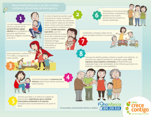 http://www.codajic.org/node/4167 Materiales para apoyar a niños y niñas en situaciones de emergencia .Autor: Chile Crece Contigo del Sistema de Promoción y Protección Social que coordina el Ministerio de Desarrollo Social y Familia 2019 .