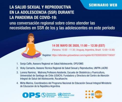 Seminario Web Gratuito : La salud sexual y reproductiva en la adolescencia (SSR) durante la pandemia de COVID-19: una conversación regional. Jue., 14 de May. de 2020 12:00 - 13:30 ART