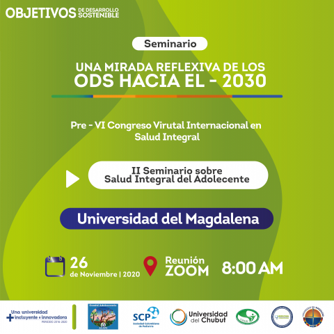 II Seminario sobre Salud Integral del Adolescente Pre- VI Congreso Virtual Internacional en Salud Integral Una mirada reflexiva de los ODS hacia el 2030. Universidad del Magdalena. 26 de Noviembre de 2020 .07.30-17.00. Colombia
