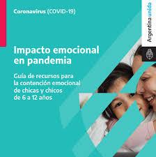 http://www.codajic.org/node/4601 Impacto emocional en pandemia. Guía de recursos para la contención emocional de chicas y chicos de 6 a 12 años.Autor: Secretaría Nacional de Niñez, Adolescencia y Familia (SENAF)Ministerio de Desarrollo Social Argentina 2021