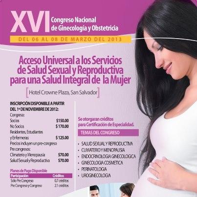 XVI Congreso Nacional de Ginecología y Obstetricia . 06-08 de Marzo de 2013 San Salvador- El Salvador .