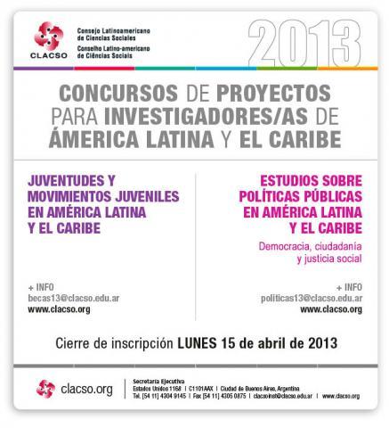 El Programa Regional de Becas del Consejo Latinoamericano de Ciencias Sociales anuncia el lanzamiento de los concursos de proyectos de investigación clacso-asdi 2013 dirigido a investigadores de América Latina y el Caribe sobre: Juventudes y movimientos juveniles en América Latina y el Caribe