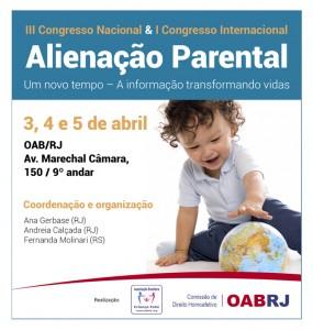 Em parceria com a Ordem dos Advogados do Brasil – Seção Rio de Janeiro, o evento acontecerá nos dias 3-4 e 5/04/2014, na sede da OAB-RJ e reunirá renomados estudiosos, Brasileiros e Estrangeiros, dos temas Alienação Parental, Guarda Compartilhada e Mediação Familiar.