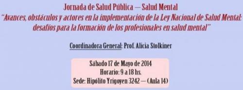 Jornada de Salud Pública – Salud Mental “Avances, obstáculos y actores en la implementación de la Ley Nacional de Salud Mental: desafíos para la formación de los profesionales en salud mental”17.05.14 Buenos Aires