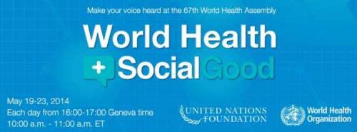 En 2014, en la sexagésima séptima Asamblea Mundial de la Salud, la OMS y la Fundación de las Naciones Unidas será el compañero de producir Mundial de la Salud + SocialGood. Este evento digital de cinco días se conectará la robusta comunidad + SocialGood y una comunidad en línea diversa de defensores de la salud a nivel mundial directamente ante la Asamblea Mundial de la Salud. A través de una transmisión en vivo todos los días, Mundial de la Salud + SocialGood proporcionará información sobre los principales acontecimientos de cada día en la Asamblea Mundial de la Salud, mientras que también ofrece contenido y conversaciones con expertos sobre temas de salud clave bajo discusión original.